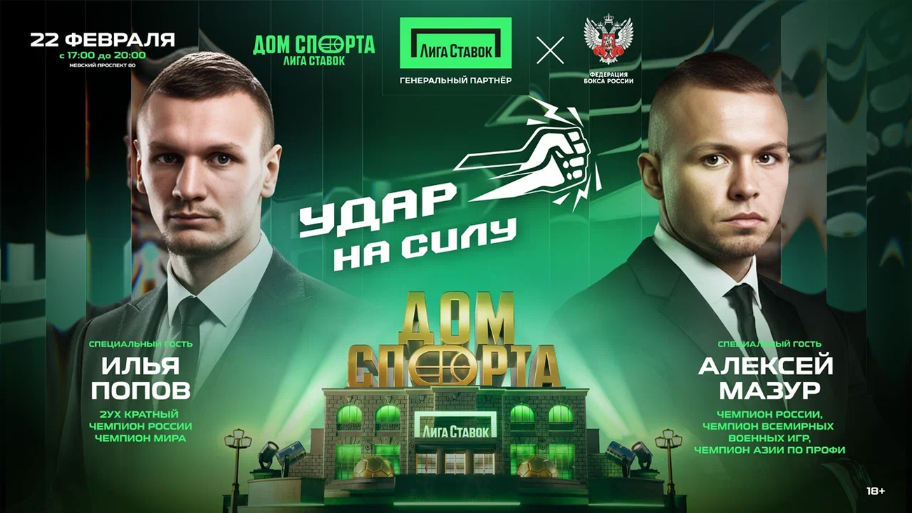 Приглашаем в Дом Спорта ЛигА Ставок на спортивное шоу «Удар на силу», которое пройдёт при поддержке Федерации бокса России.